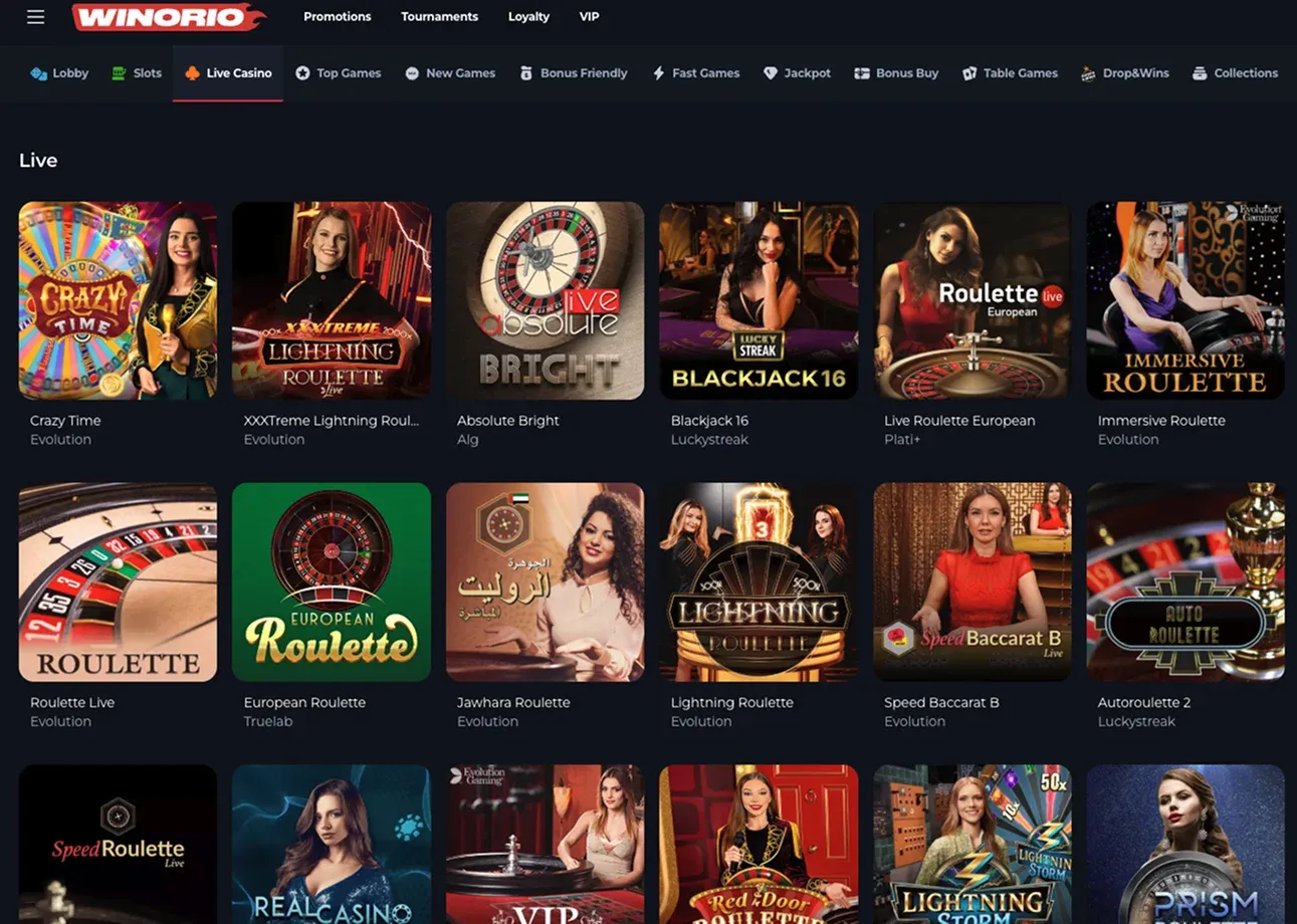 Winorio Casino Live Dealer Games